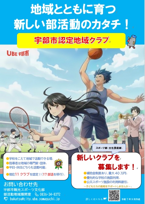少子化に伴い、部活動が廃部になったり、部員の減少により大会やコンクールに出場できなかったりする学校が増えています。スポーツ・文化活動を楽しみたいという中学生の思いに応えるとともに、地域の様々な世代間の交流を深めるため、宇部市では「平日も含めた地域クラブ活動への完全移行」を目標にしています。その実現に向け、令和4年11月に設立したスポーツ・文化関係団体の代表や学校関係者等で組織する協議会にて、地域クラブ設立要件や制度設計等についての協議を重ねています。