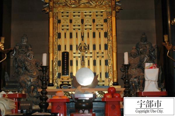 - 持国天(総高57.2センチメートル)、増長天(総高63.9センチメートル)、多聞天(総高62センチメートル)、広目天(総高61.5センチメートル)からなり、いずれも桧材の寄木造りです。